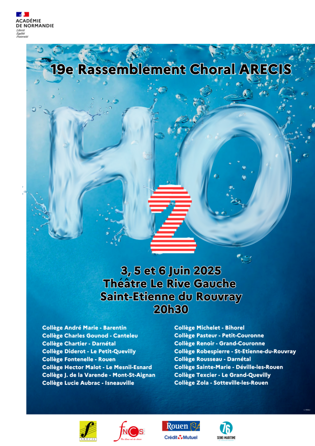 Cette année les 15 établissements participant au festival choral ARECIS ont monté un spectacle sur le thème de l’eau intitulé H2O. Le spectacle met en scène Violette, une collégienne qui a le pouvoir de dessiner des personnages qui prennent vie. Son ami béluga qu’elle a créé tombe dans la Seine et nous suivons ses péripéties pour retrouver la mer à travers des chansons de Vanessa Paradis, Hoshi, Hudie Ledbetter jusqu’à Thierry Machuel.