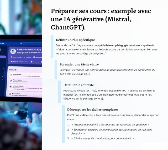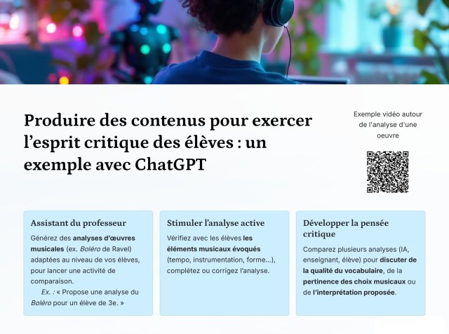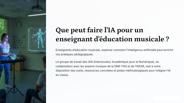 En quoi l’IA peut-elle faciliter la vie professionnelle des professeurs d’éducation musicale ? Quelques exemples très concrets, élaborés par les interlocuteurs académiques au numérique de la discipline, montrent des utilisations concrètes et efficaces de différents outils intégrant l’IA.