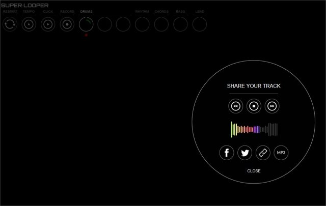 Avec un visuel épuré mais dynamique, une latence tout à fait correcte, cet outil en ligne permet la création de boucles de batterie, basse et différents synthétiseurs. Sept voix actives différentes qui se superposent très facilement grâce à l’utilisation de l’échelle pentatonique. La quantification est assez rigide et ne se règle pas. Frustrant pour nos triolets mais cela permettra un résultat très propre pour les utilisateurs un peu moins précis. L’enregistrement est très facile et l’export en .mp3 ou par un lien se fait en un clic.